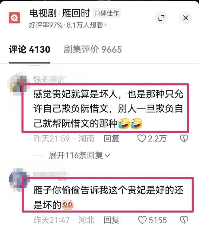 观剧吃瓜的粉丝们更是担心得不行,弹幕上、评论区里纷纷留言问,雁子,苗贵妃到底是哪个战营的?快偷偷告诉我们,她是好人还是坏人?